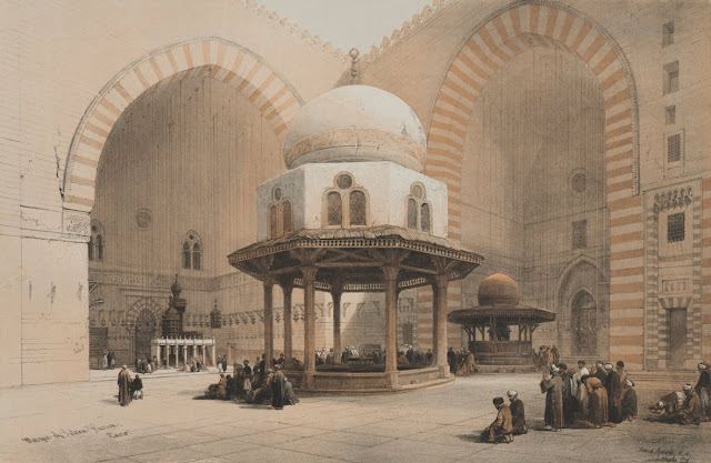 | 1849 Egypt and Nubia, Volume III; Mosque of Sultan Hassan, from the Great Square of the Rameyleh colour lithograph 43.8 x 60.3 cm |